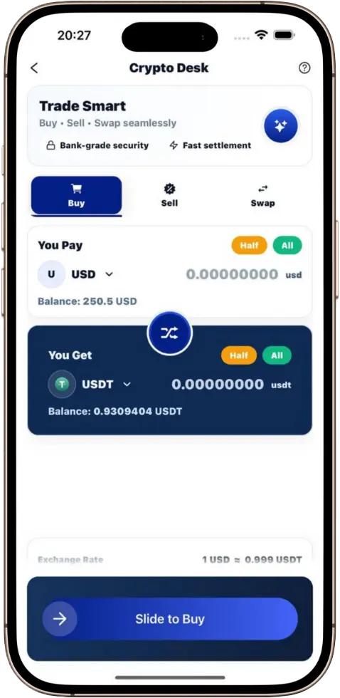 Swap, hold, send, receive — with transparent rates.